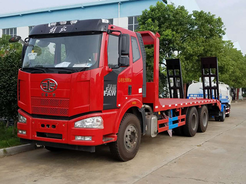 改裝部分可以根據(jù)用戶需要選擇材料。標(biāo)配橫梁采用6mm厚方鋼,底板采用8mm厚花紋板,可以選擇加厚材料。 解放J6前四后八平板運(yùn)輸車可以運(yùn)輸35噸工程機(jī)械。廠家直銷:13997882988。